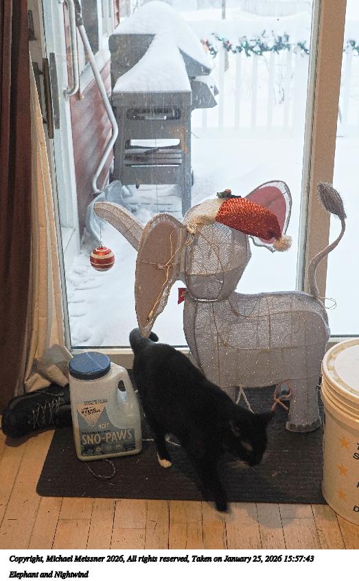 Picture #6: Elephant and Nightwind 523x846, 103,276 bytes (101K), (html file) Copyright, Michael Meissner 2026, All rights reserved OM OM3 camera with Olympus-m43 12-40mm f/2.8 lens f/2.8, ISO 640, 1/60 sec, 15.0mm, auto mode, vivid color, matrix metering, IS Auto, face detection, anti-shock 35mm equivalent focal length 30.0mm Programs used: crop, gimp, raw therapee, rotate left Taken by Michael Meissner on January 25, 2026 15:57:43 Last modified on January 25, 2026 at 23:00 |