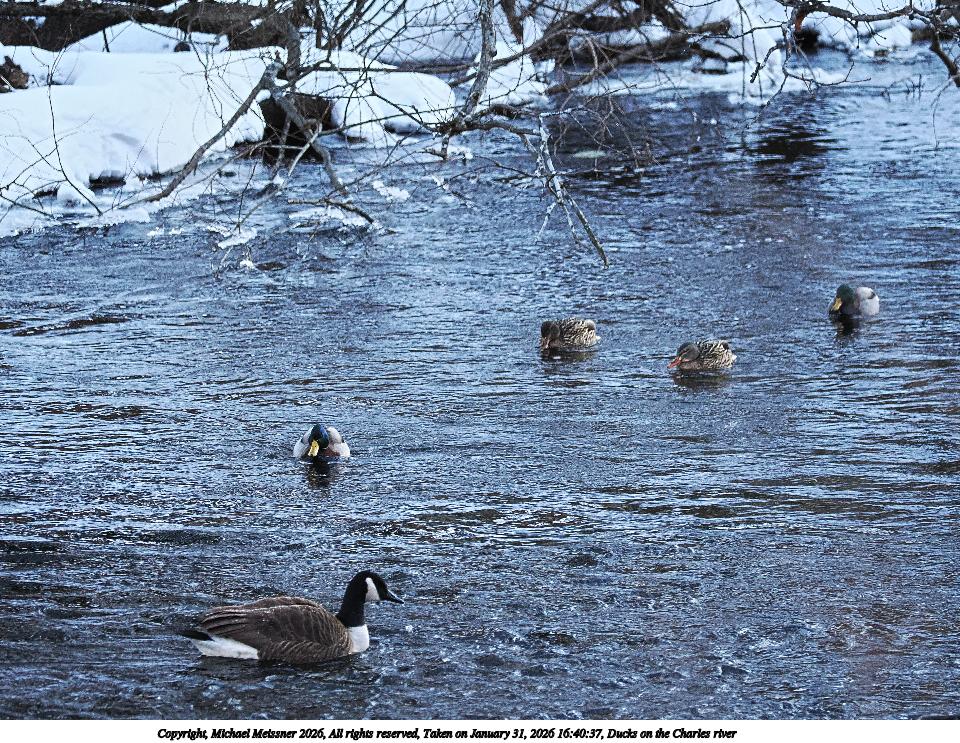 Picture #4: Ducks on the Charles river #3 960x743, 214,591 bytes (210K), (html file) Copyright, Michael Meissner 2026, All rights reserved OM OM1 camera with OM 40-150mm f/4.0 lens f/4.0, ISO 1600, 1/250 sec, 140.0mm, auto mode, vivid color, matrix metering, IS Auto, anti-shock 35mm equivalent focal length 280.0mm Programs used: crop, raw therapee Taken by Michael Meissner on January 31, 2026 16:43:27 Last modified on February 01, 2026 at 14:17 |