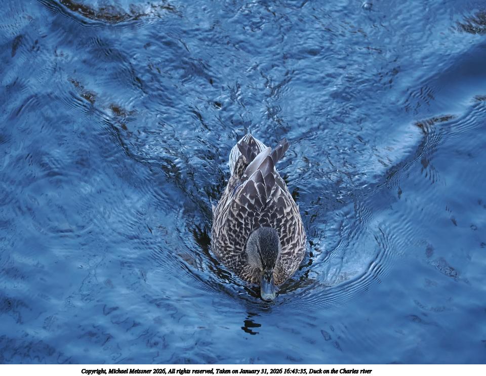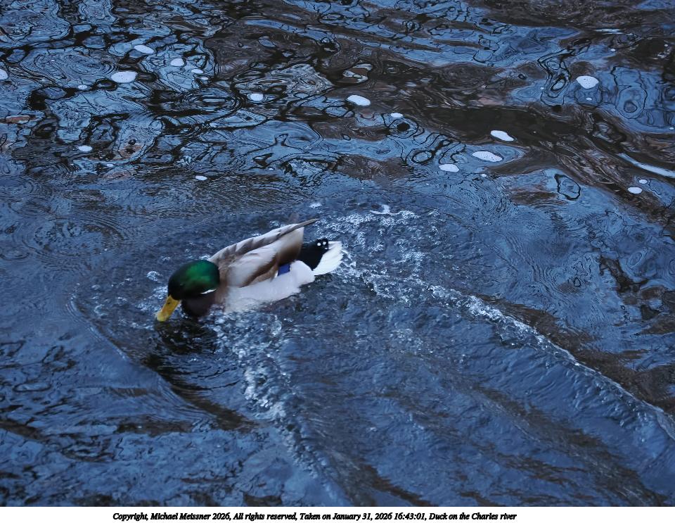 Picture #2: Duck on the Charles river 960x743, 190,822 bytes (187K), (html file) Copyright, Michael Meissner 2026, All rights reserved OM OM1 camera with OM 40-150mm f/4.0 lens f/4.0, ISO 3200, 1/320 sec, 140.0mm, auto mode, vivid color, matrix metering, IS Auto, anti-shock 35mm equivalent focal length 280.0mm Programs used: crop, raw therapee Taken by Michael Meissner on January 31, 2026 16:43:01 Last modified on February 01, 2026 at 14:14 |