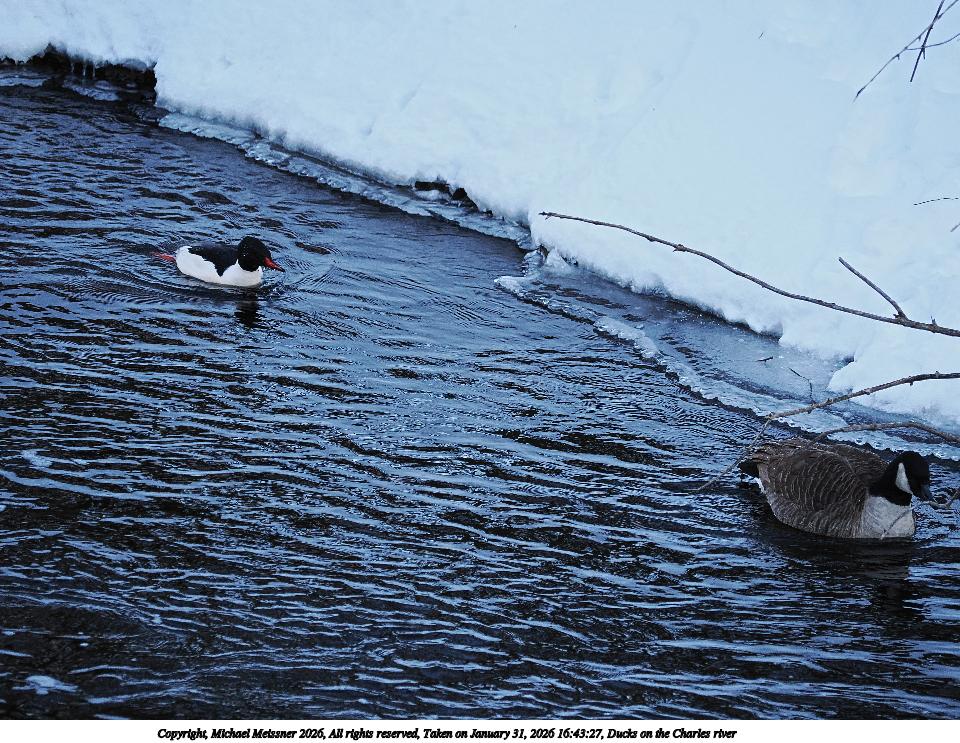 Picture #3: Ducks on the Charles river #2 960x743, 273,665 bytes (268K), (html file) Copyright, Michael Meissner 2026, All rights reserved OM OM1 camera with OM 40-150mm f/4.0 lens f/4.0, ISO 2000, 1/200 sec, 97.0mm, auto mode, vivid color, matrix metering, IS Auto, anti-shock 35mm equivalent focal length 194.0mm Programs used: crop, raw therapee Taken by Michael Meissner on January 31, 2026 16:43:21 Last modified on February 01, 2026 at 14:15 |