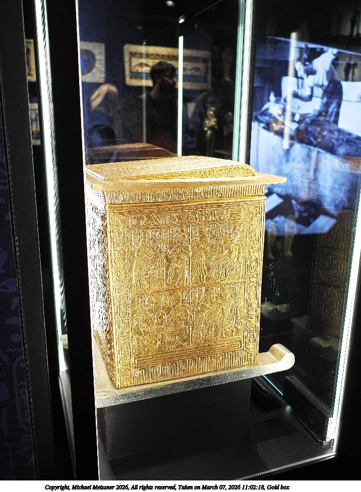 Picture #61: Nesting gold coffins #2 960x743, 182,870 bytes (179K), (html file) Copyright, Michael Meissner 2026, All rights reserved OM OM3 camera with Panasonic-Leica 15mm f/1.7 lens f/1.8, ISO 400, 1/60 sec, 15.0mm, auto mode, vivid color, matrix metering, continous focus, IS Auto, face detection, anti-shock 35mm equivalent focal length 30.0mm Programs used: crop, raw therapee Taken by Michael Meissner on March 07, 2026 11:30:11 Last modified on March 07, 2026 at 21:04 |