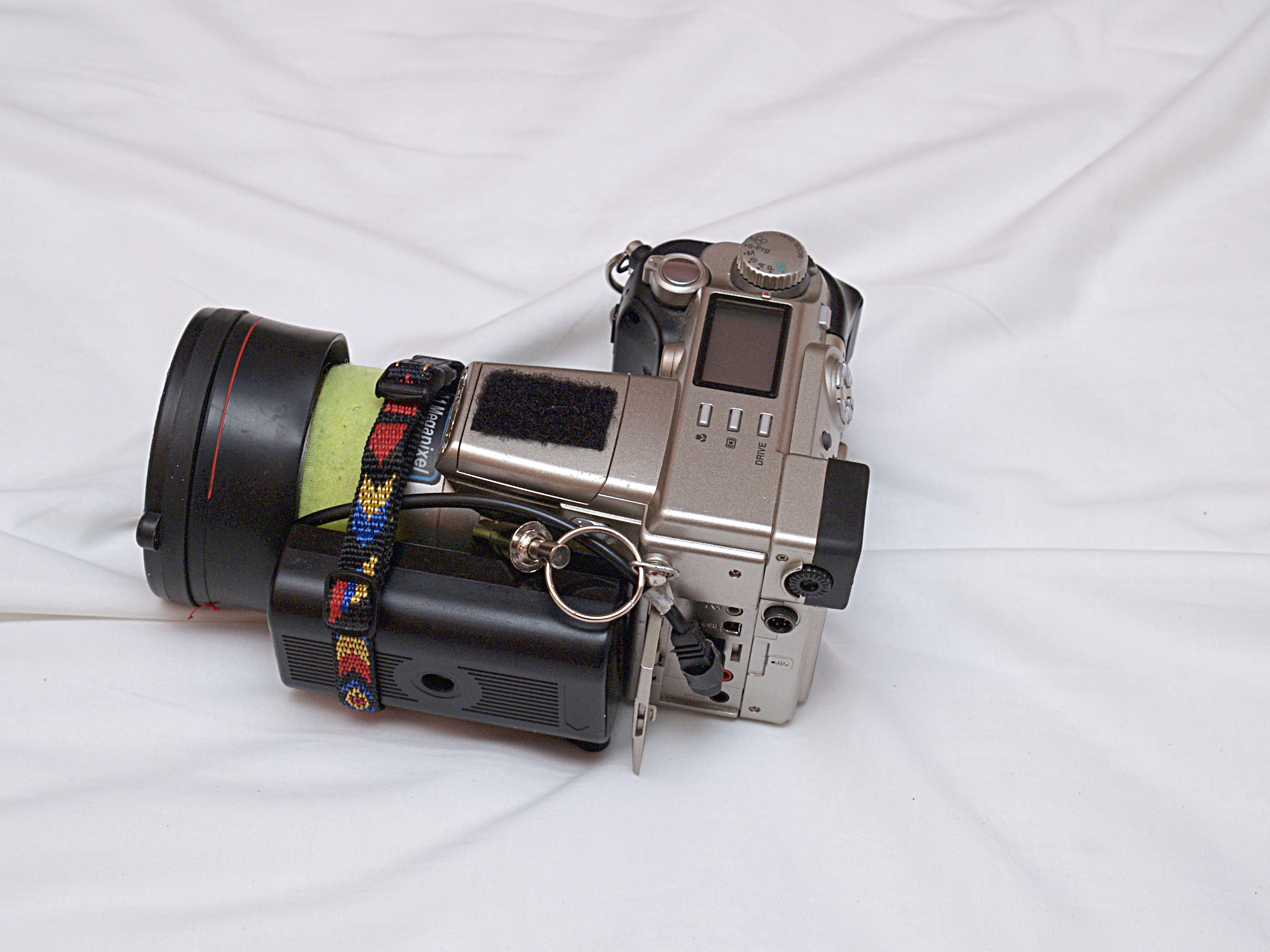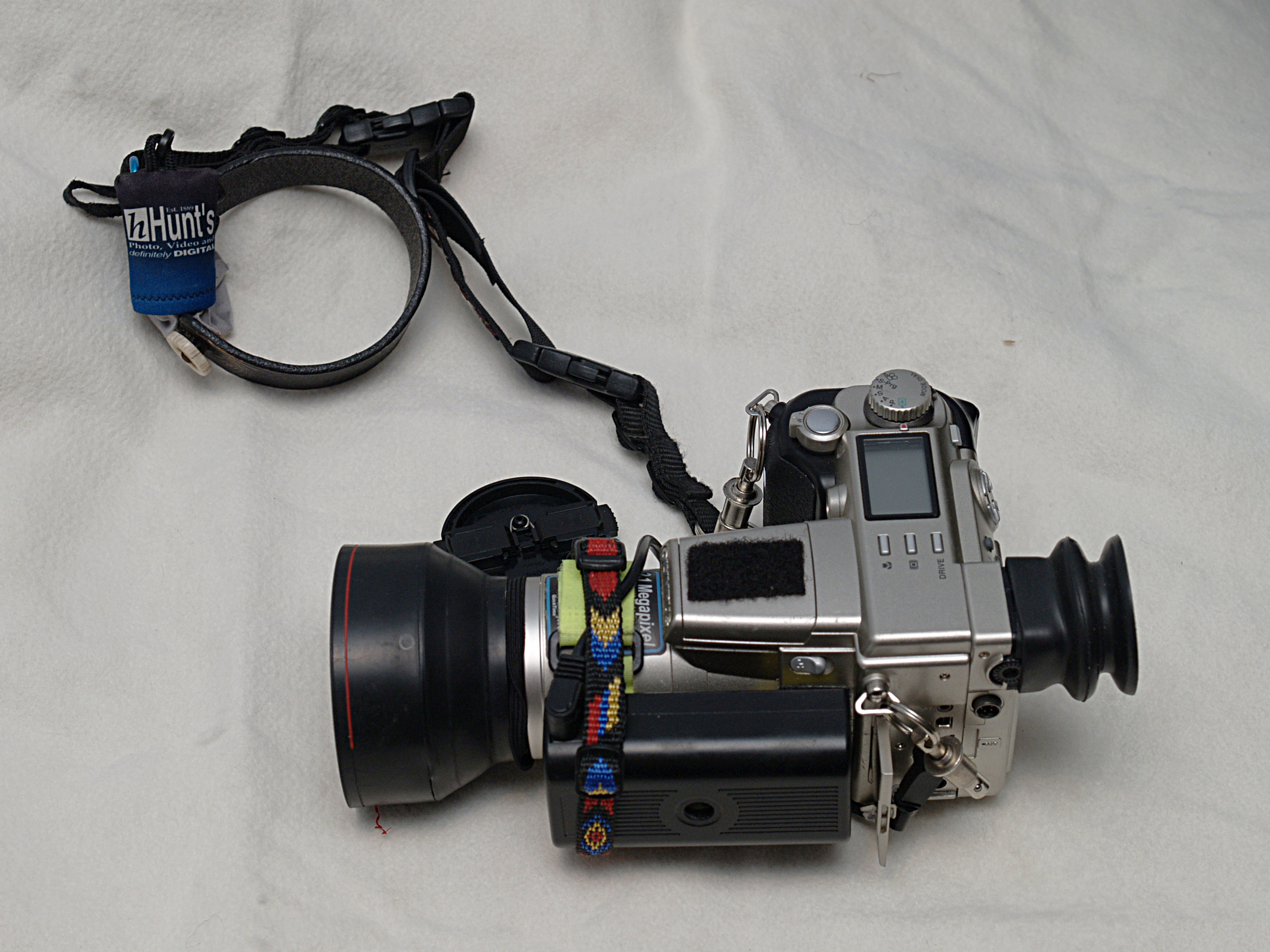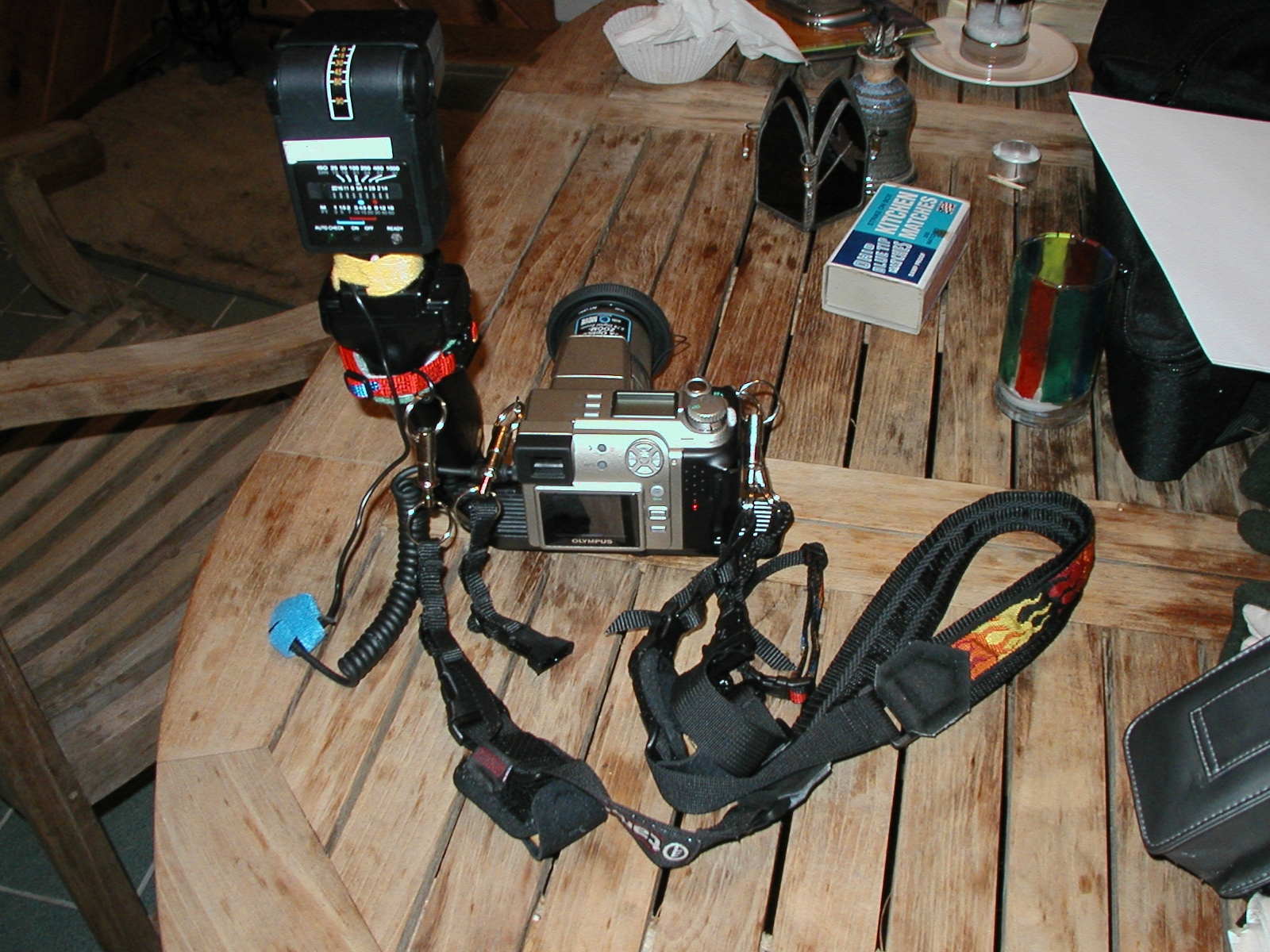 Picture #379: Tamrac N-17 strap with dog collar to attach to flash bracket Small: 800x623, 75,915 bytes (75K), (html file) Large: 1600x1200, 1,369,329 bytes (1.3M), (html file) Copyright, Michael Meissner 2002, All rights reserved Olympus C-2100UZ camera f/5.6, ISO 100, 1/125 sec, 17.3mm, manual mode, SHQ, matrix metering 35mm equivalent focal length 96.0mm Taken by Michael Meissner on June 08, 2002 01:22:03 Last modified on June 08, 2002 at 12:16 Shutter speed of 1/125 or 1/250 may indicate use of flash |