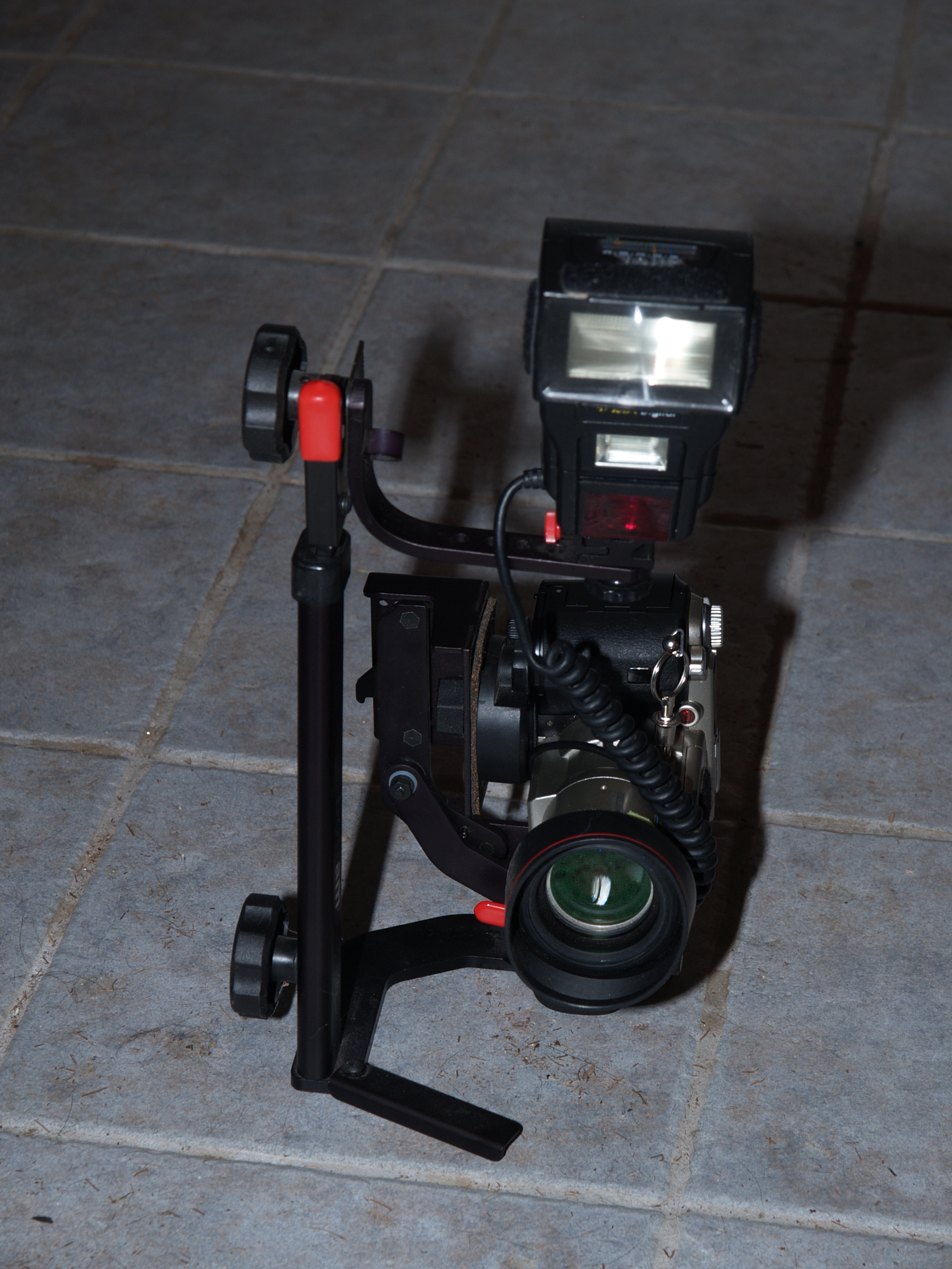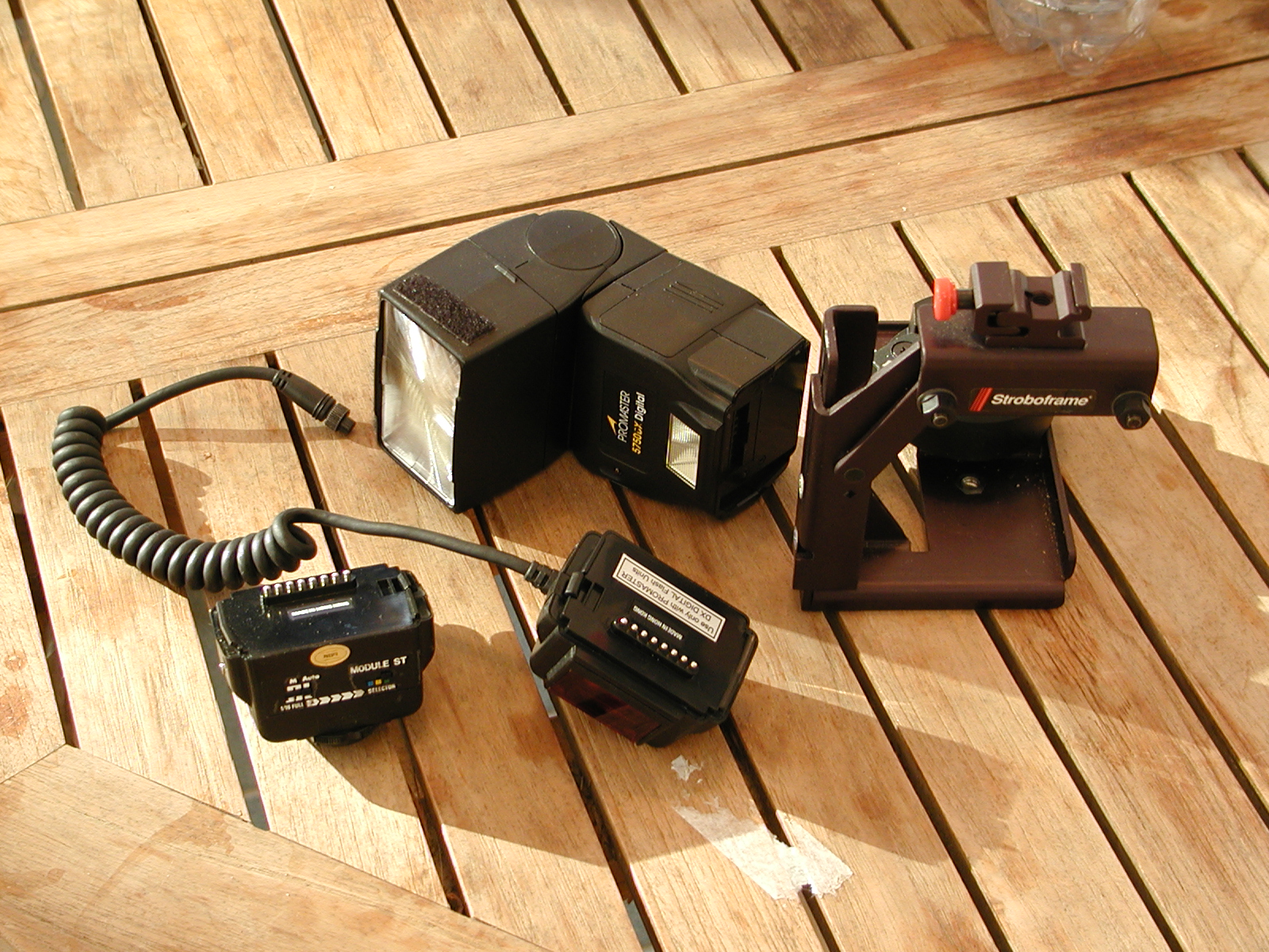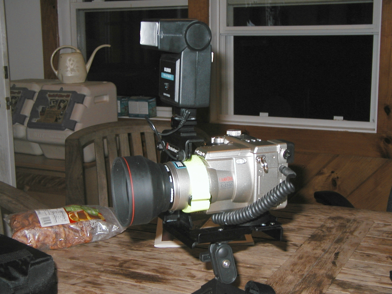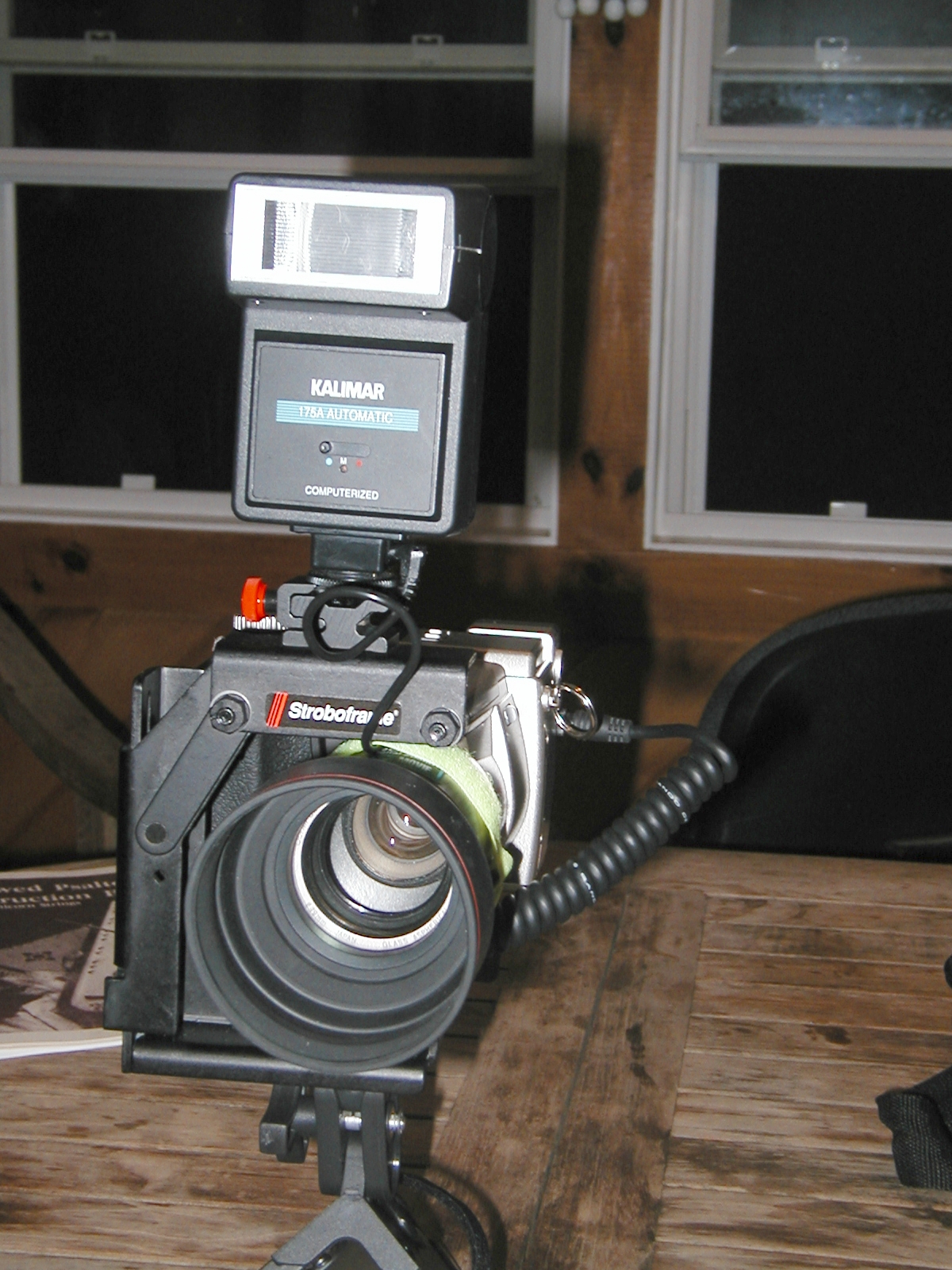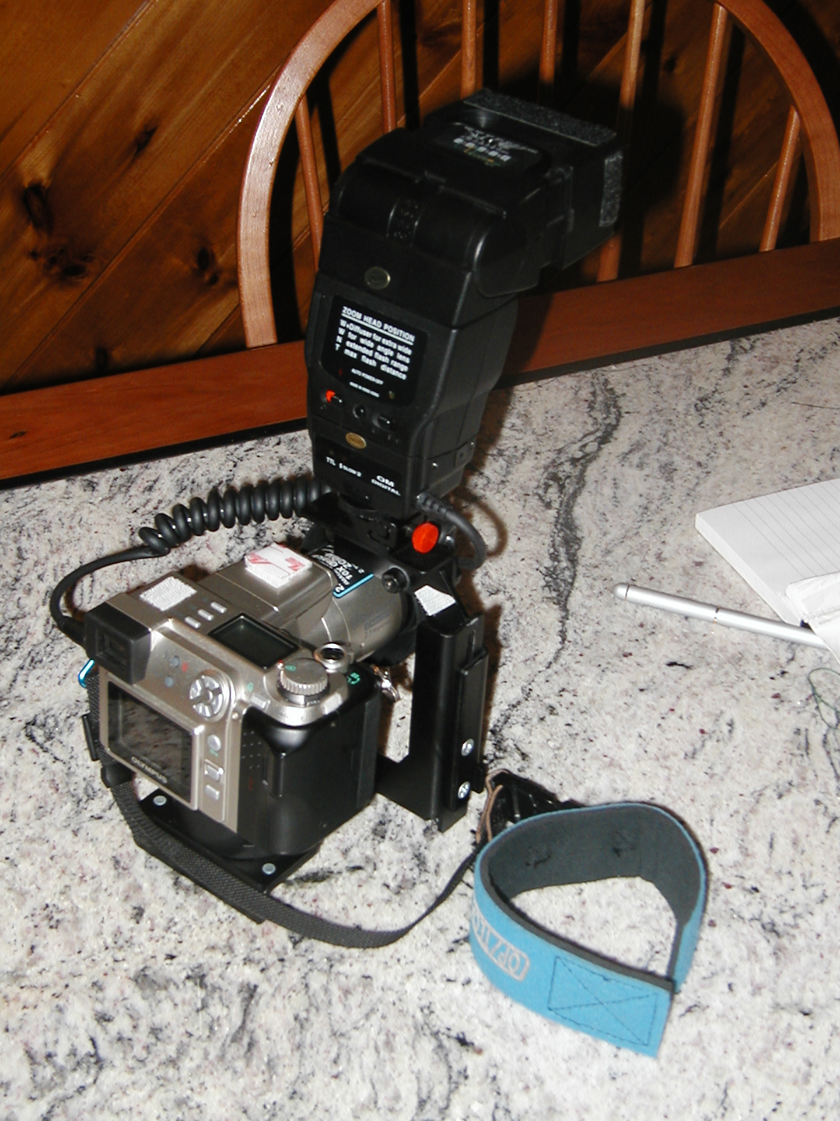 Picture #349: Stoboframe Stoboflip VH2000 bracket Small: 600x846, 65,734 bytes (65K), (html file) Large: 1200x1600, 1,235,791 bytes (1.2M), (html file) Copyright, Michael Meissner 2002, All rights reserved Olympus C-2100UZ camera f/5.6, ISO 100, 1/125 sec, 20.7mm, manual mode, SHQ, matrix metering 35mm equivalent focal length 115.0mm Taken by Michael Meissner on July 20, 2002 01:48:19 Last modified on July 20, 2002 at 11:49 Shutter speed of 1/125 or 1/250 may indicate use of flash |