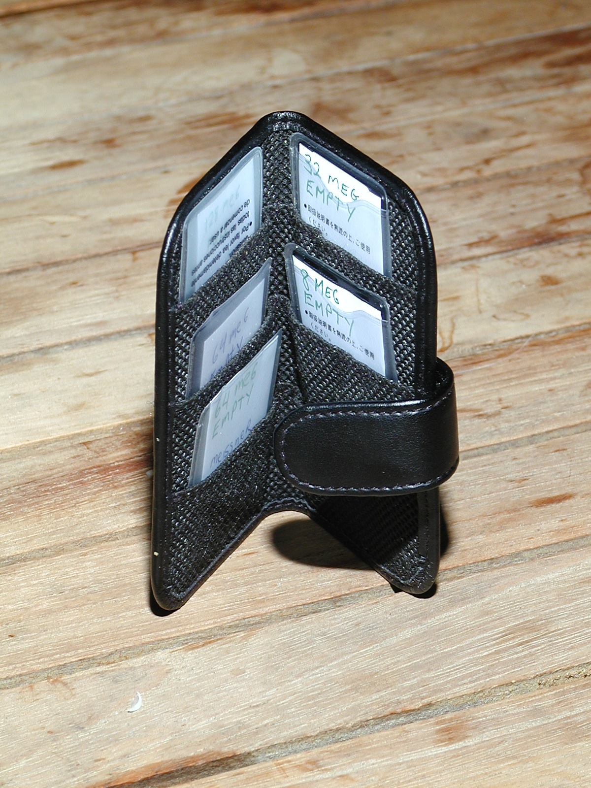 Picture #365: Case Logic battery and media holder Small: 800x623, 93,959 bytes (92K), (html file) Large: 1600x1200, 1,252,743 bytes (1.2M), (html file) Copyright, Michael Meissner 2002, All rights reserved Olympus C-2100UZ camera f/5.6, ISO 100, 1/125 sec, 13.4mm, manual mode, SHQ, matrix metering 35mm equivalent focal length 74.0mm Taken by Michael Meissner on June 12, 2002 09:15:32 Last modified on June 12, 2002 at 12:40 Shutter speed of 1/125 or 1/250 may indicate use of flash |
