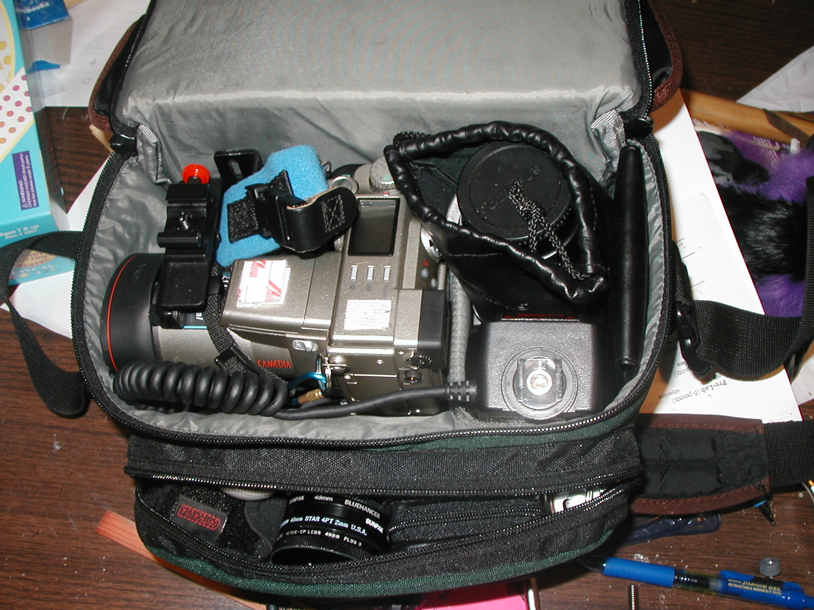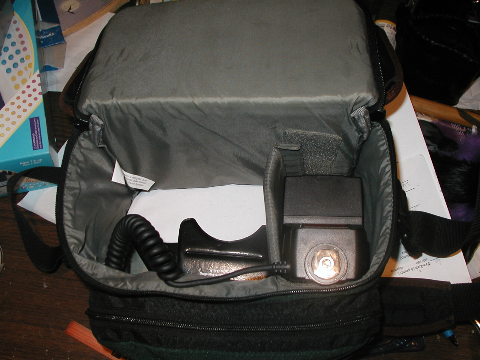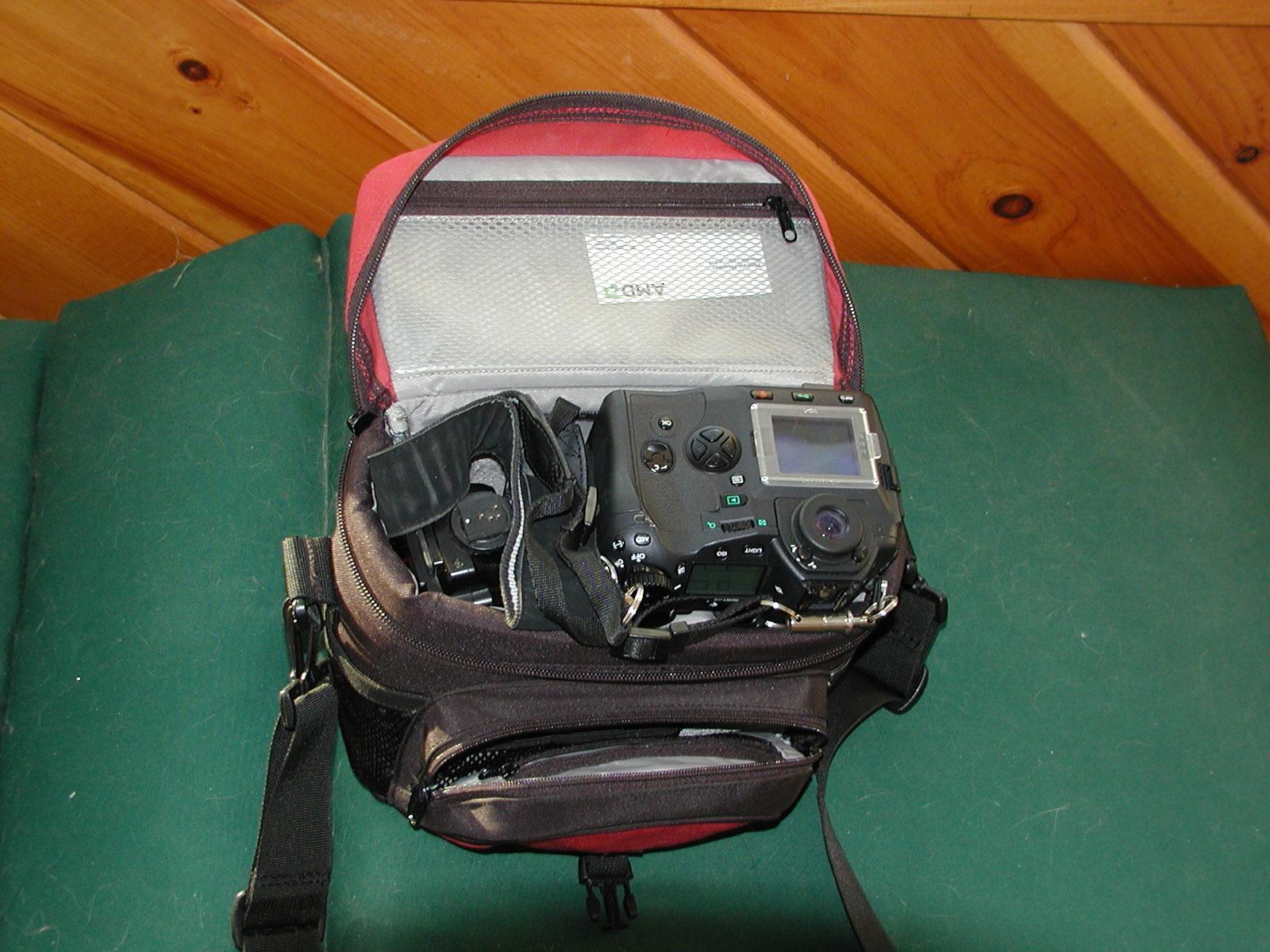 Picture #372: Case Logic camera bag #2 Small: 800x623, 85,237 bytes (84K), (html file) Large: 1600x1200, 1,444,707 bytes (1.4M), (html file) Copyright, Michael Meissner 2002, All rights reserved Olympus C-2100UZ camera f/5.6, ISO 100, 1/125 sec, 10.7mm, manual mode, SHQ, matrix metering 35mm equivalent focal length 59.0mm Taken by Michael Meissner on June 08, 2002 01:51:00 Last modified on June 08, 2002 at 20:54 Shutter speed of 1/125 or 1/250 may indicate use of flash |