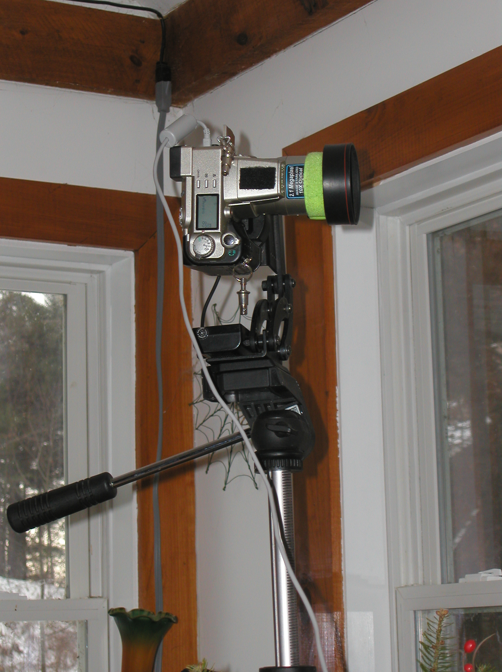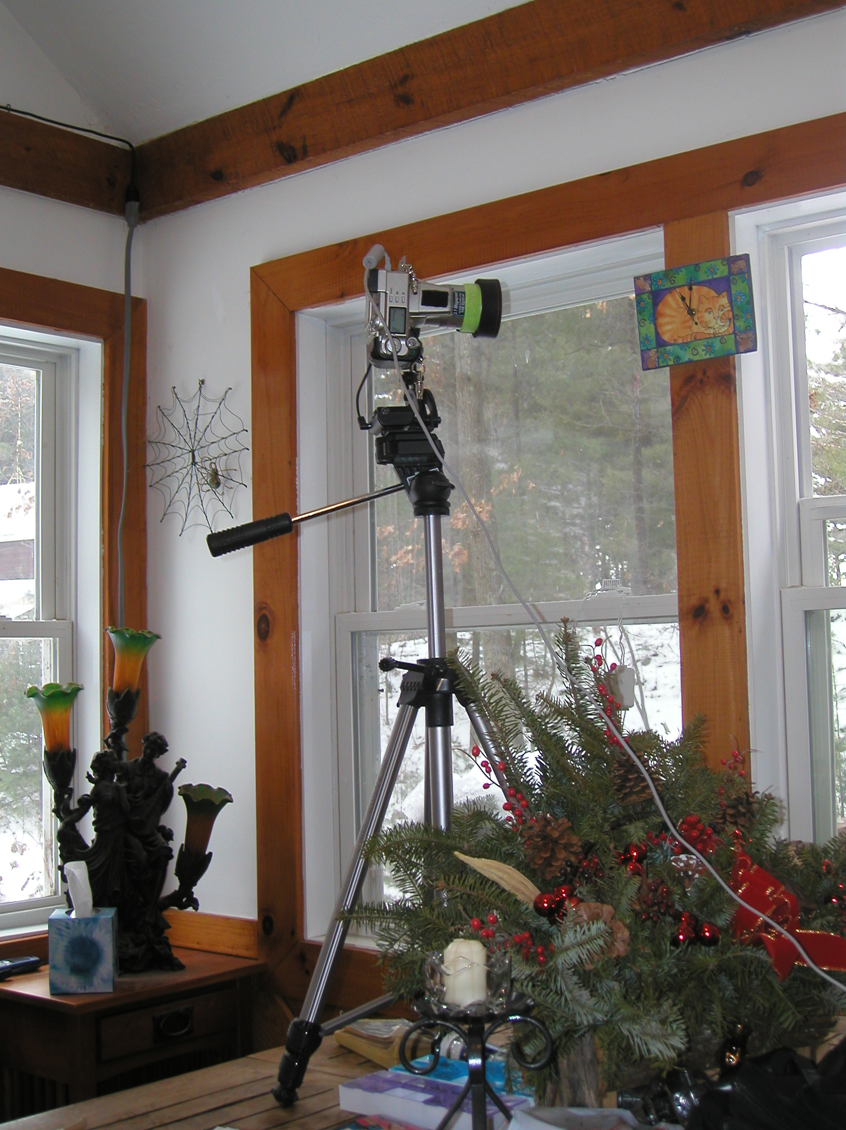 Picture #296: Camera setup for taking bird pictures via USB remote control Small: 599x846, 66,168 bytes (65K), (html file) Large: 1712x2288, 1,842,528 bytes (1.8M), (html file) Copyright, Michael Meissner 2004, All rights reserved Olympus D-40Z camera f/4.8, ISO 100, flash, 1/100 sec, 19.4mm, auto mode, SHQ, matrix metering 35mm equivalent focal length 95.0mm Taken by Michael Meissner on December 30, 2004 11:02:11 Last modified on December 30, 2004 at 12:29 |