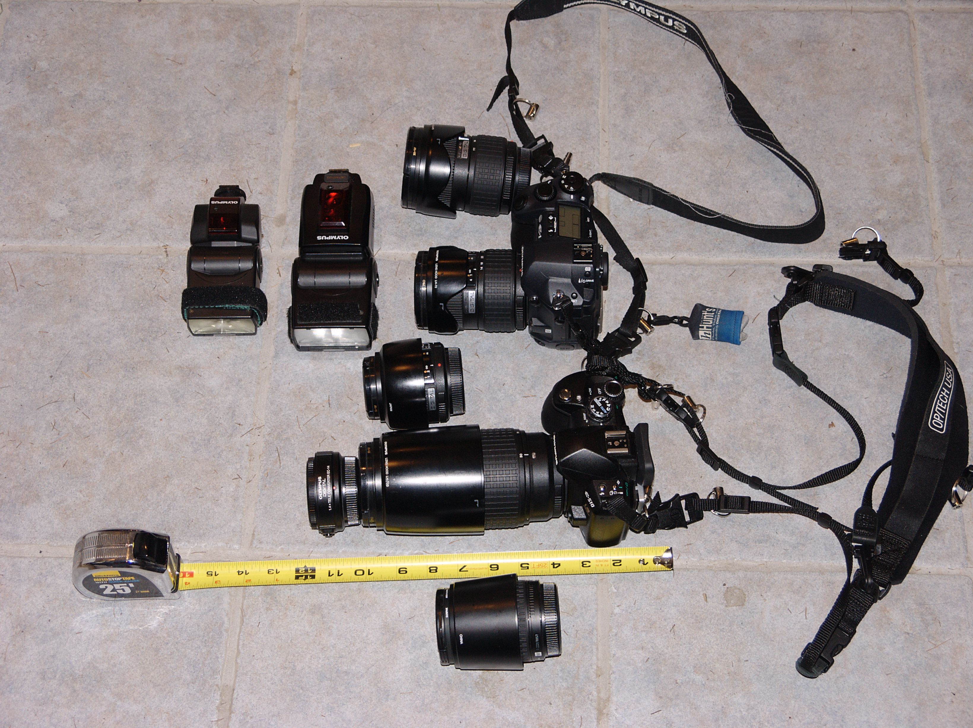 Picture #337: Packing the bag #1, Lumiquest bouncer underneath, Promaster flash on side Small: 800x646, 68,764 bytes (68K), (html file) Large: 1600x1200, 916,806 bytes (896K), (html file) Copyright, Michael Meissner 2002, All rights reserved Olympus D-510Z camera f/2.8, ISO 100, flash, 1/30 sec, 5.6mm, auto mode, SHQ, spot metering 35mm equivalent focal length 37.0mm Taken by Michael Meissner on September 12, 2002 00:04:18 Last modified on September 12, 2002 at 00:21 |