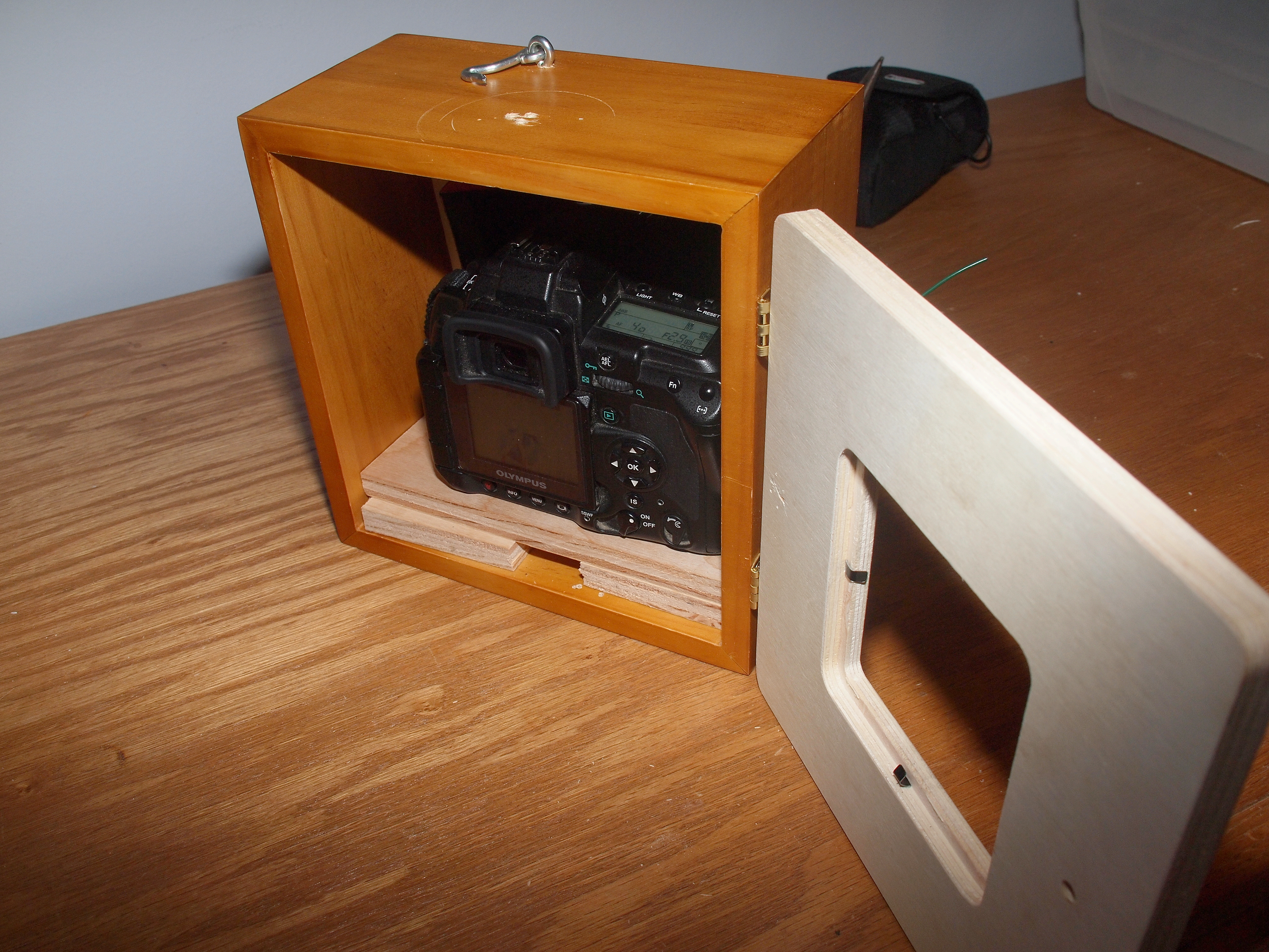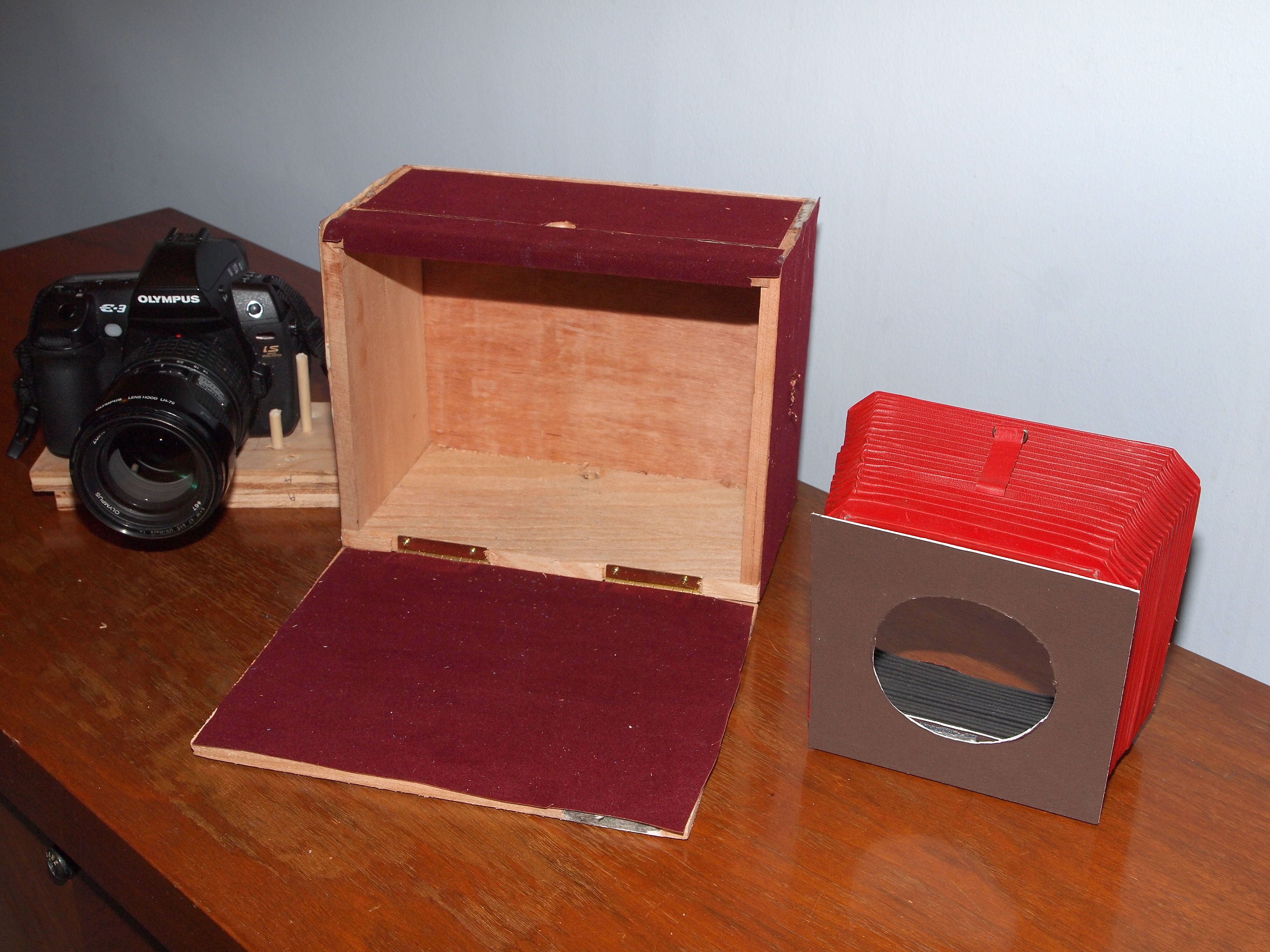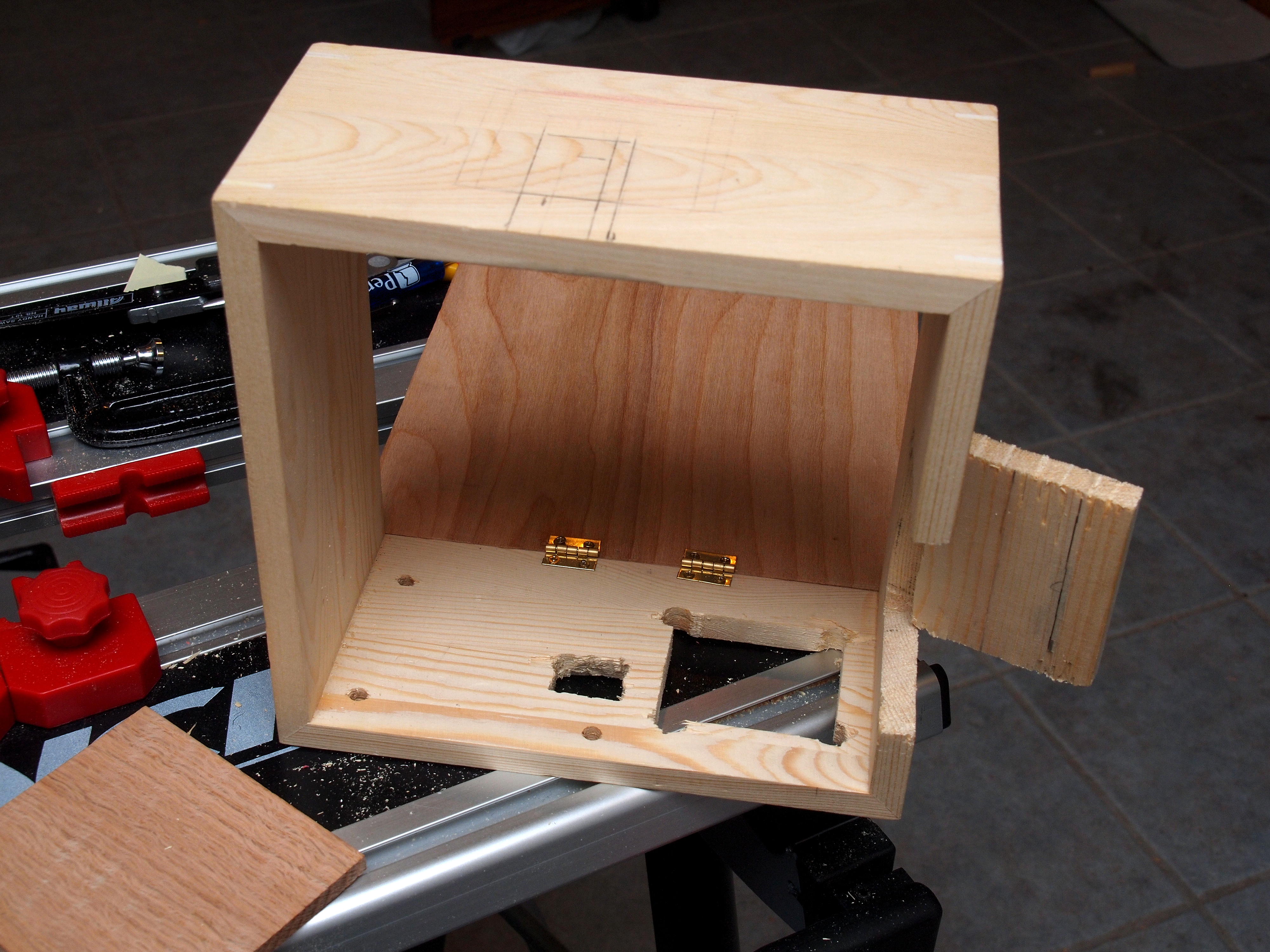 Picture #90: Building the camera shell with a hand saw router box Small: 900x623, 99,127 bytes (97K), (html file) Large: 3600x2400, 7,561,678 bytes (7.2M), (html file) Copyright, Michael Meissner 2011, All rights reserved Olympus E-P2 camera with Olympus-m43 14-150mm f/4.0-5.6 lens f/8.0, ISO 400, FL-36 flash (+0.33 flash compensation), 1/60 sec, 20.0mm, aperture priority, vivid color, matrix metering, auto + manual focus, IS1 (All Direction Shake IS), noise reduction auto 35mm equivalent focal length 40.0mm Extra equipment used: Olympus FL-36 flash Programs used: gimp Taken by Michael Meissner on February 05, 2011 19:29:15 Last modified on February 05, 2011 at 22:04 After Arisia in 2011, I decided that changing the batteries was cumbersome, so I bought an Olympus HLD-4 battery grip for my E-3. This in turn called for using a bigger box, so I decided to build this box by hand. |