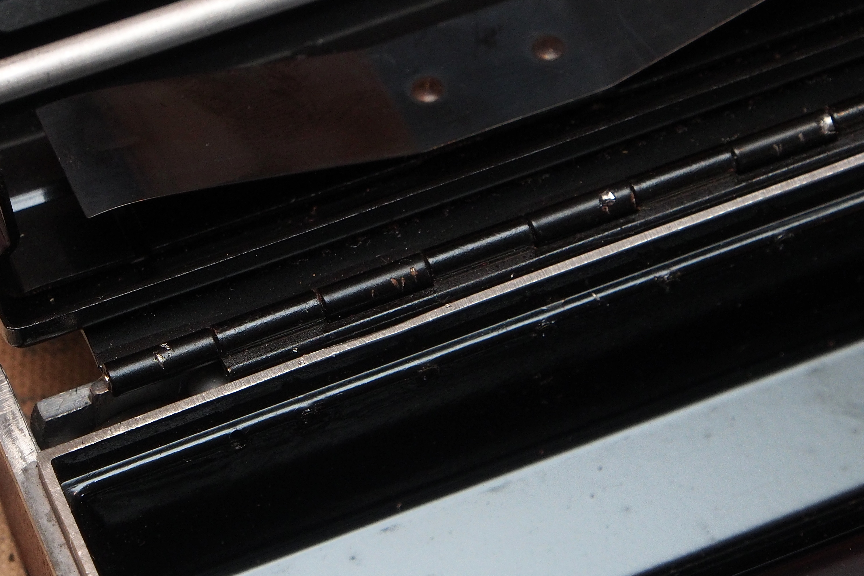 Picture #29: Hinge on Polaroid 95 Small: 1000x690, 92,662 bytes (91K), (html file) Large: 3000x2000, 2,983,089 bytes (2.8M), (html file) Copyright, Michael Meissner 2014, All rights reserved Olympus E-M5-I camera with Olympus-m43 12-50mm f/3.5-6.3 lens f/8.0, ISO 800, FL-36R flash (+0.33 flash compensation), 1/100 sec, 50.0mm, aperture priority, vivid color, matrix metering, IS1 (All Direction Shake IS), noise filter low 35mm equivalent focal length 100.0mm Programs used: crop, gimp, raw therapee Taken by Michael Meissner on November 21, 2014 10:50:58 Last modified on November 21, 2014 at 11:05 |