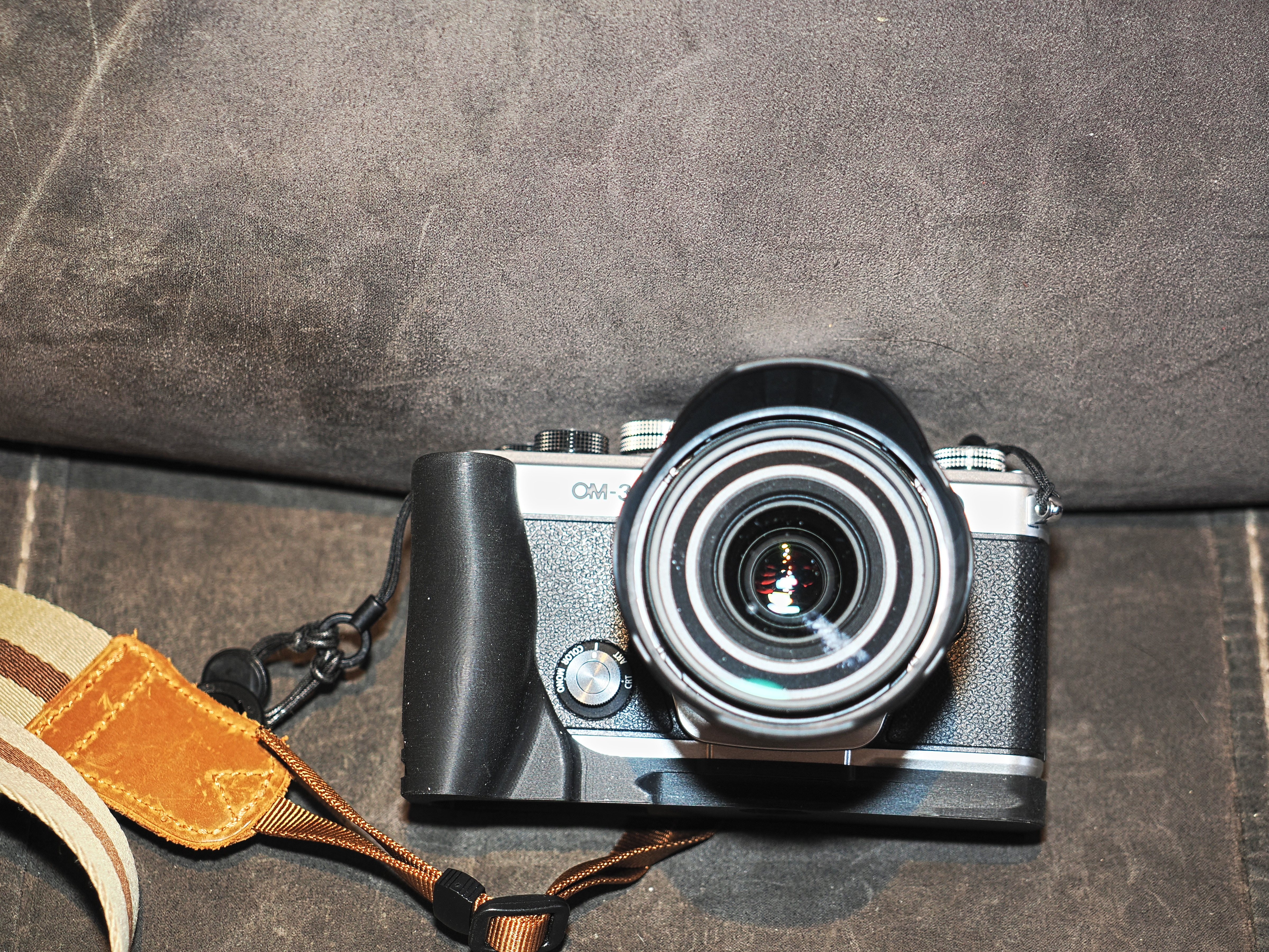 Picture #13: OM-3 with leather case, neck strap, and hand strap Small: 960x663, 204,031 bytes (200K), (html file) Large: 4800x3200, 18,363,721 bytes (18M), (html file) Copyright, Michael Meissner 2025, All rights reserved OM OM1 camera with Olympus-m43 12-40mm f/2.8 lens f/2.8, ISO 200, FL-50R flash, 1/60 sec, 24.0mm, auto mode, vivid color, matrix metering, IS Auto, anti-shock 35mm equivalent focal length 48.0mm Programs used: crop, raw therapee, rawtherapee-helper Taken by Michael Meissner on August 27, 2025 00:47:06 Last modified on August 27, 2025 at 01:56 I bought this leather case, neck strap, and hand strap from an ebay seller called 'cam-in-leather'. It combines a traditional leather 1/2 case, along with a grip that extends the hand grip to allow for shooting heavier lenses hand held. |